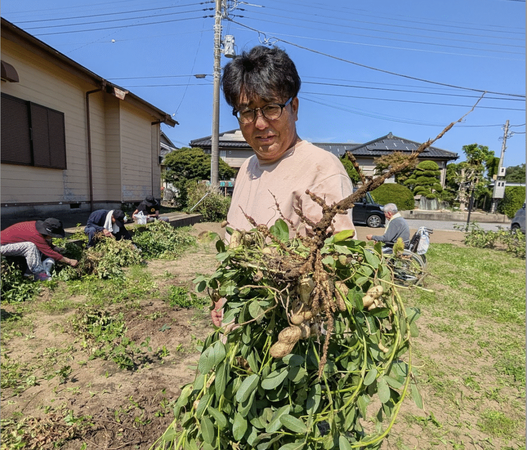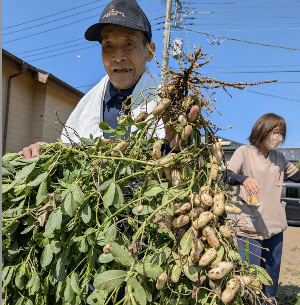 両手いっぱいに落花生を抱えて、自然と笑い声が広がります。